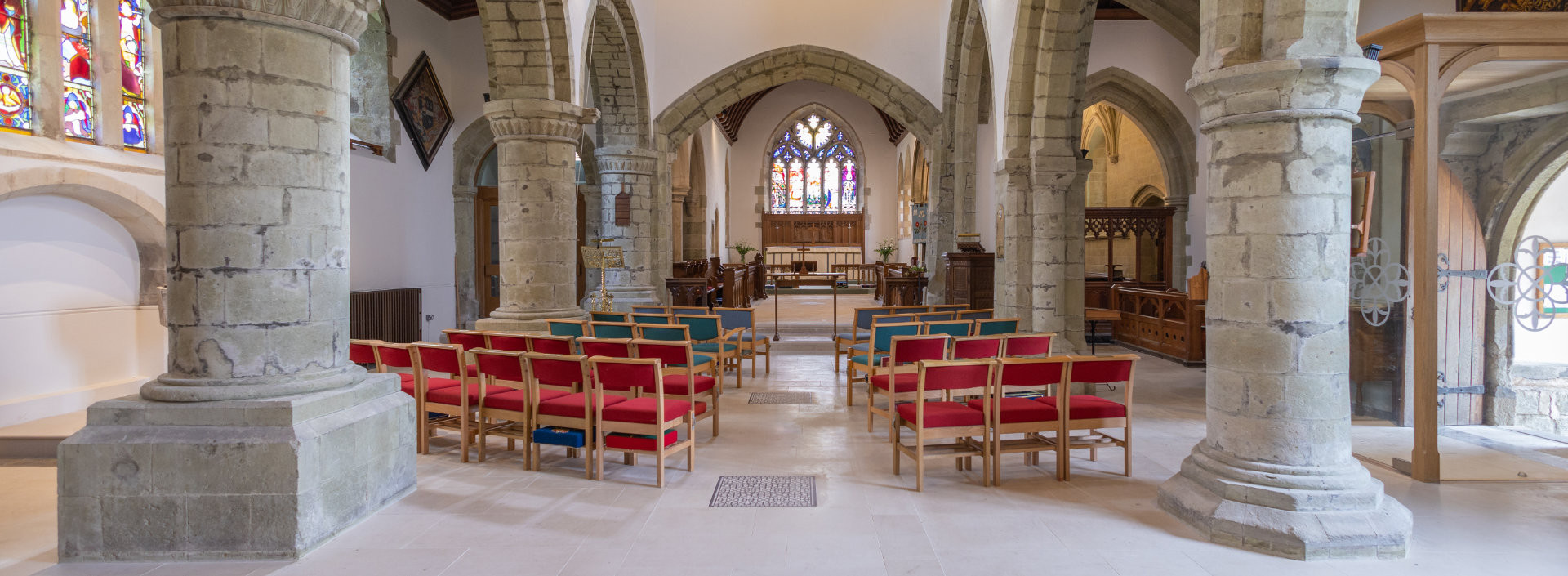 Fabric repairs were identified within the quinquennial inspection, to address failing masonry, water ingress and poor secondary glazing on the south elevation of the South Transept. The project included masonry repairs including re-pointing, replacement of dressed stone and removal of the Victorian tie bar that was responsible for bursting open the Bath limestone as it rusted. The leaded glass and modern secondary glazing were replaced with a new leaded glass window, which took the opportunity to introduce coloured glass, with a design that could be seen inside and out. The green and yellow tones of the design relate to the New Forest and the locality of the building. Enlarged borders of rectangular glass and motifs were used to introduce form and design into an otherwise diamond leaded window, which kept costs within budget whilst making a significant improvement to the interior space.